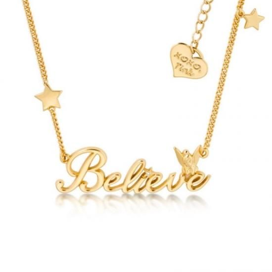 Disney Couture Classic 14kt Gold-Plated Believe Word Tinkerbell Necklace