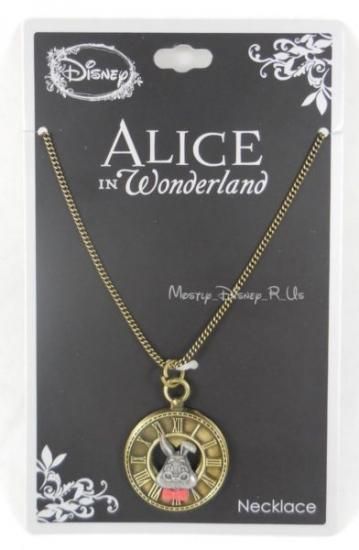New Disney Alice In Wonderland White Rabbit Clock Pendant Necklace Cord Chain